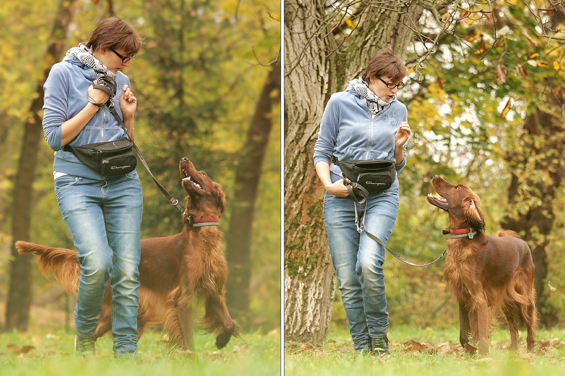 Po drugie zaś (rzecz w kontekście li tylko chodzenia na luźnej smyczy zapewne znacznie ważniejsza) zaczęłam zastanawiać się, czego tak właściwie od swojego zwierza oczekuję, a także do czego właściwie jest mi to wszystko potrzebne. W ten sposób doszłam do wniosku, że wcześniej źle podchodziłam do sprawy, w zasadzie nie rozróżniając dwóch zupełnie rozbieżnych kwestii – chodzenia na luźnej smyczy oraz chodzenia przy nodze na kontakcie wzrokowym (komenda “równaj”). Zdałam sobie sprawę z tego, że moje wcześniejsze działania były skierowane na nauczenie raz jednej (metoda “na drzewko”), innym razem zaś drugiej (klikanie i nagradzanie spojrzeń w moją stronę) z wymienionych wyżej umiejętności. Oczywiście, był to błąd. Stąd ważnym krokiem na drodze leczenia syndromu lokomotywy u pacjentki T. było wyraźne rozgraniczenie obu zachowań i uczenie każdego z nich osobno. Domyślam się, że nikomu nie trzeba wyjaśniać, czym jest równanie, uważam jednak, iż dla porządku warto porównać je tutaj właśnie z chodzeniem na luźnej smyczy, mam bowiem wrażenie, że te dwie umiejętności bywają mylone lub też jedną z nich się lekceważy i próbuje zastąpić drugą.